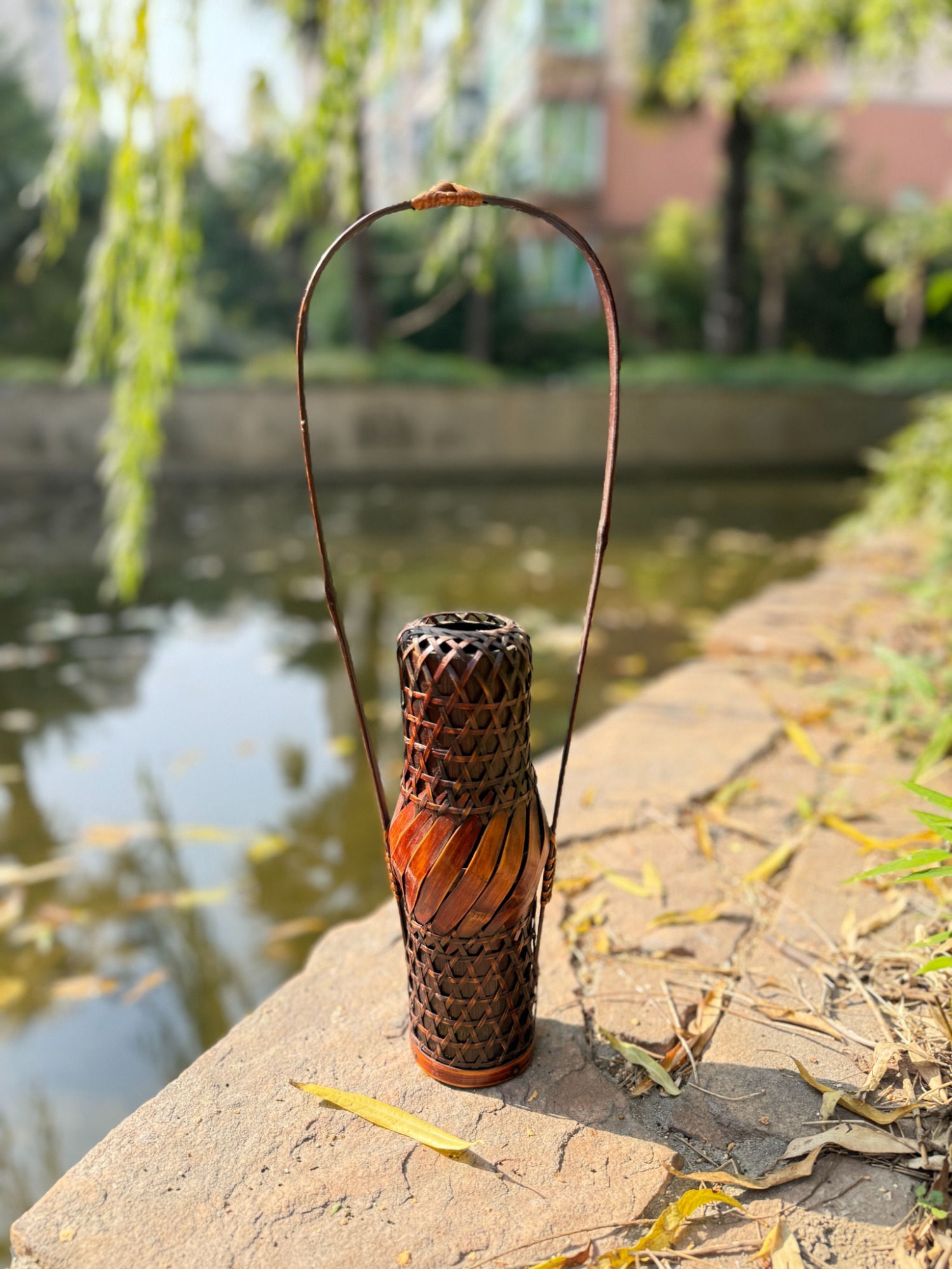 Handcrafted from responsibly sourced bamboo. This wall lattice vase highlights renewable materials and traditional craftsmanship. Specially treated for long-term indoor use, water-resistant and mould-free.